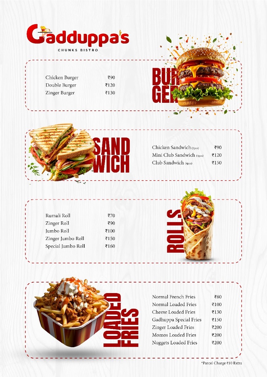 Step inside and be greeted by the tantalizing aroma of their signature dishes. The highlight of their menu is undoubtedly the Chicken Burger. Imagine sinking your teeth into a perfectly seasoned, juicy chicken patty that's been grilled to golden-brown perfection, nestled within a lightly toasted sesame bun. Fresh lettuce, ripe tomatoes, and onions provide a refreshing crunch, all brought together with Gadduppa's unique creamy sauce. It's a simple yet profoundly satisfying classic that will linger on your palate and tempt your taste buds to return for more.